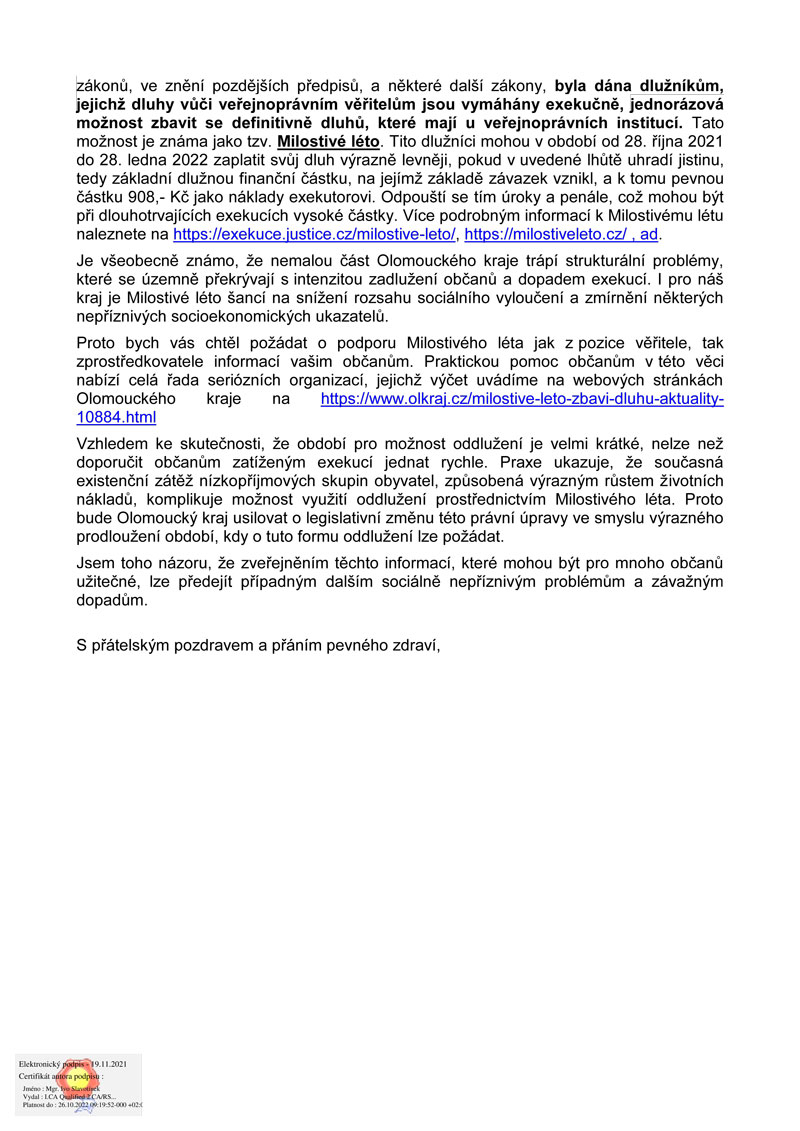 = jednorázová možnost dlužníkům zbavit se definitivně dluhů, které mají u veřejnoprávních institucí a jejichž dluhy vůči veřejnoprávním věřitelům jsou vymáhány exekučně. Období pro možnost oddlužení je velmi krátké, je třeba jednat rychle. Důležité odkazy: