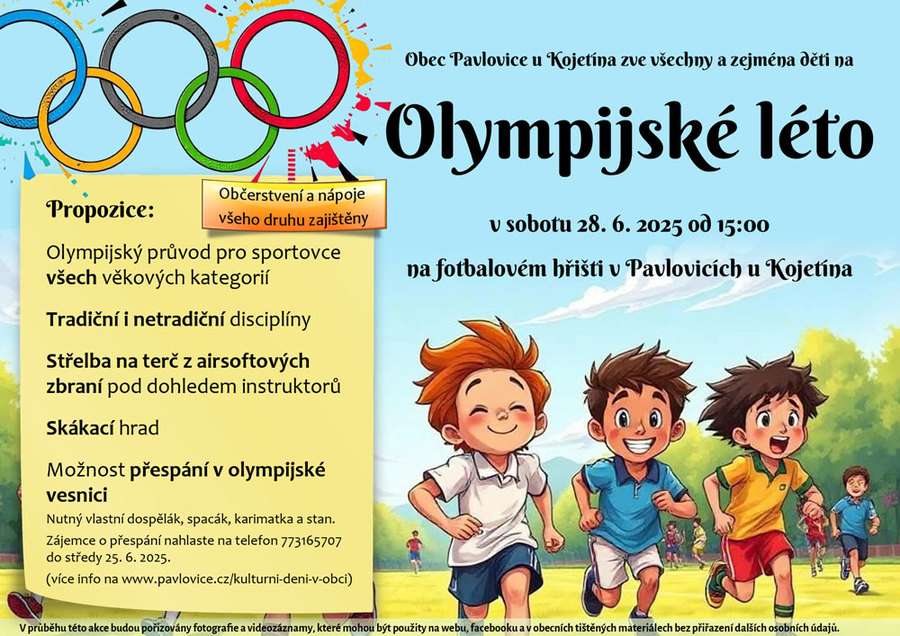 Možnost přespání v olympijské vesnici (více na https://www.pavlovice.cz/kulturni-deni-v-obci)