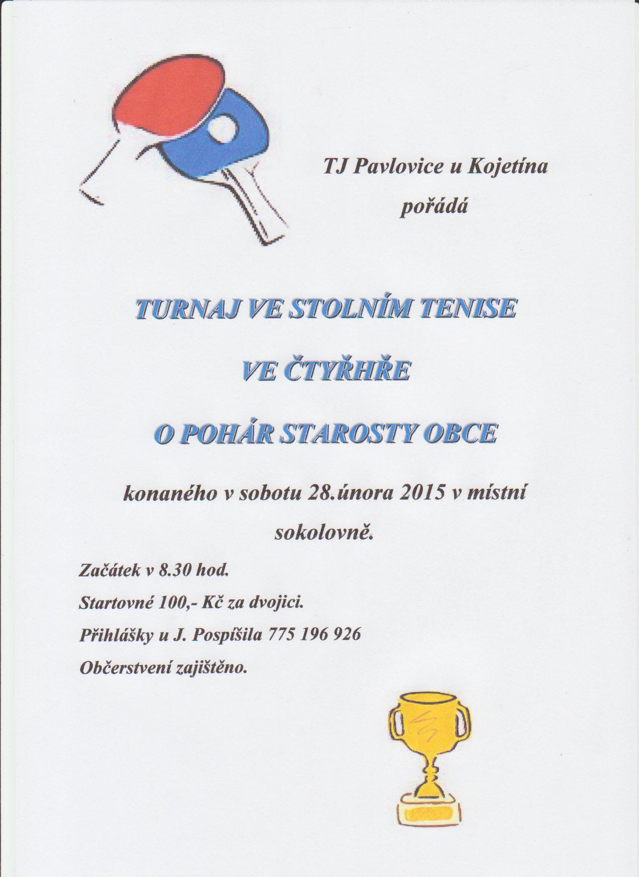 Turnaj ve stolním tenise ve čtyřhře O pohár starosty obce