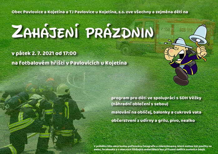 Zahájení prázdnin s SDH Věžky uspořádala Obec Pavlovice u Kojetína a TJ Pavlovice u Kojetína