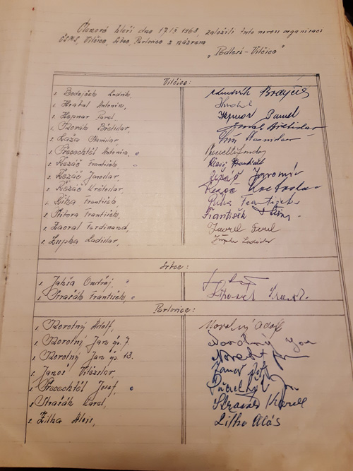 17. 5. 1963 byla založena organizace nová - Myslivecké sdružení Vitčice (15 členů), Srbce (2 členové), Pavlovice (7 členů) s názvem „Podlesí - Vitčice“. (Zakládající členové na obrázku - pro zvětšení klikněte)